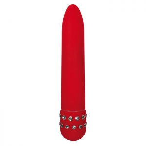 Секс шоп » Вибраторы » Классические » Красный вибратор DIAMOND RED SUPERBE VIBE с кристаллами - 15 см.