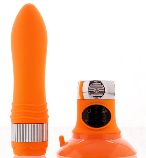 Секс шоп » Вибраторы » Классические » Оранжевый водонепроницаемый вибратор на присоске со сменной панелью управления 19 см.