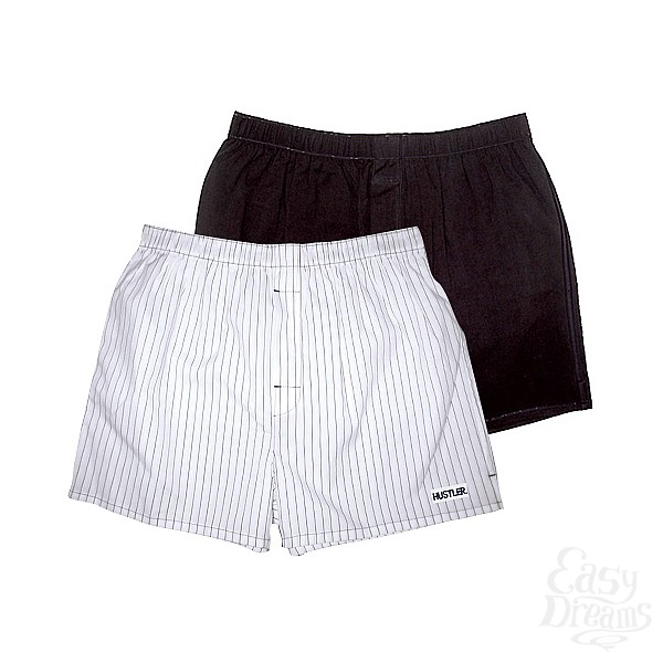 Секс шоп » Эротическое белье » Эротическое белье мужское » Мужские трусы » Пара мужских трусов-шортов HUSTLER - черные и в полоску HUW-1011BLKL (150)