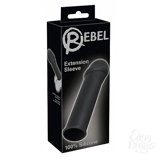 Секс шоп » Насадки / Кольца » Насадки на пенис » Чёрная удлиняющая насадка для пениса Rebel - 16 см.